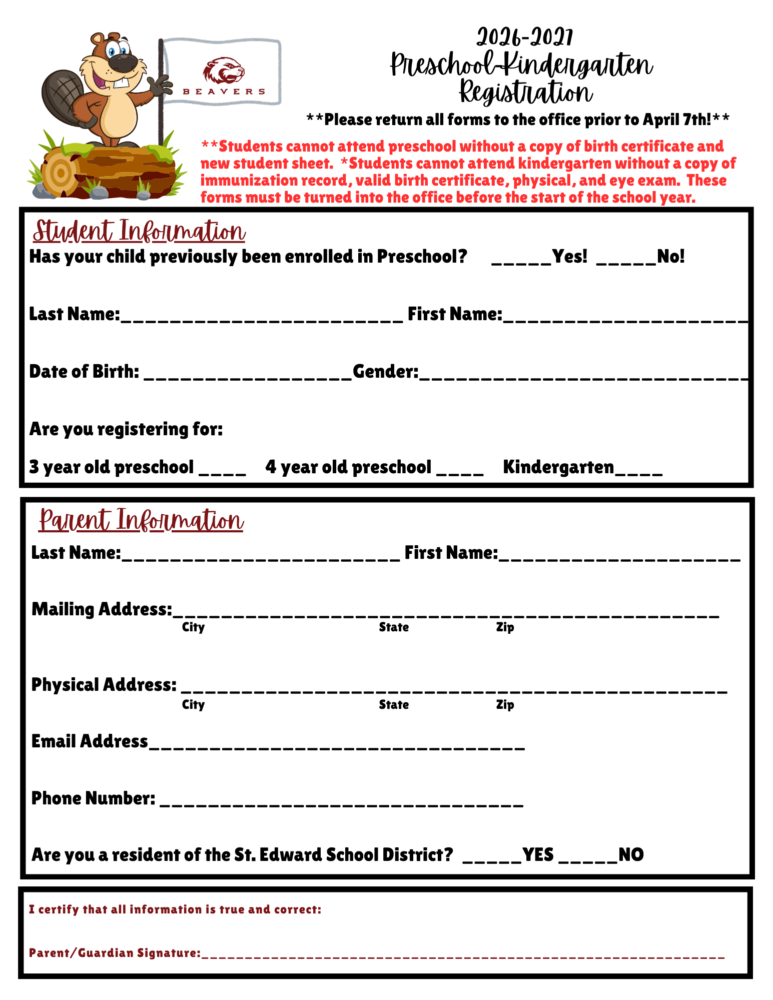 Preschool/Kindergarten Registration