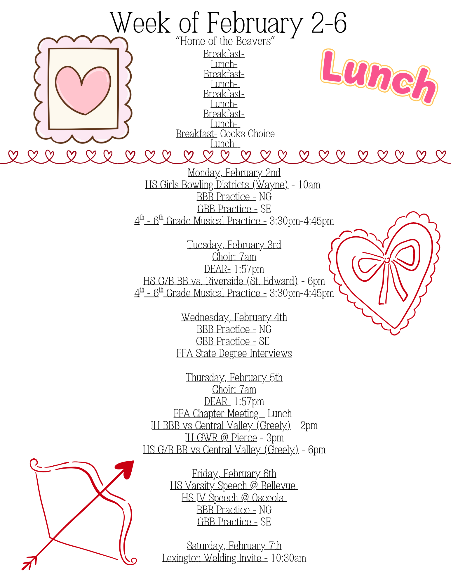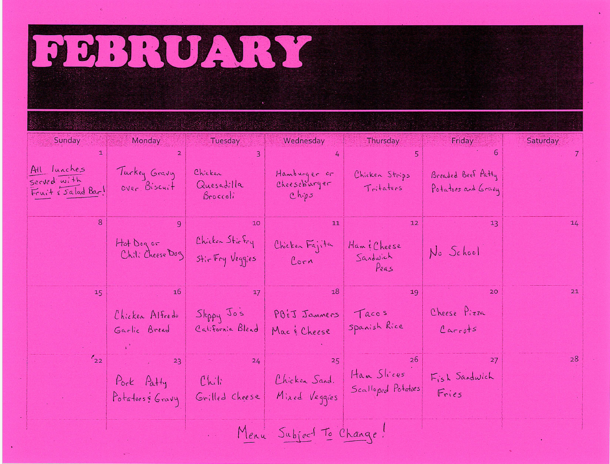 LUNCH MENU-FEBRUARY 2026